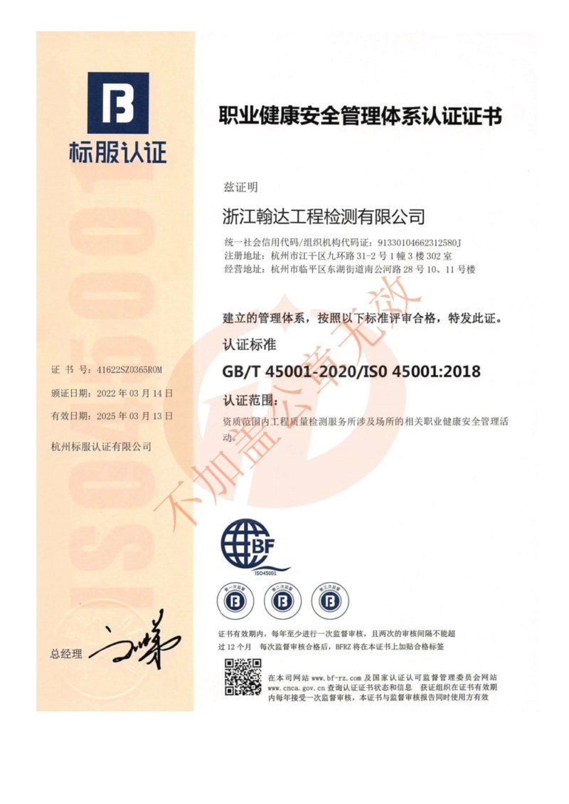 職業(yè)健康安全管理體系認(rèn)證證書(shū)
